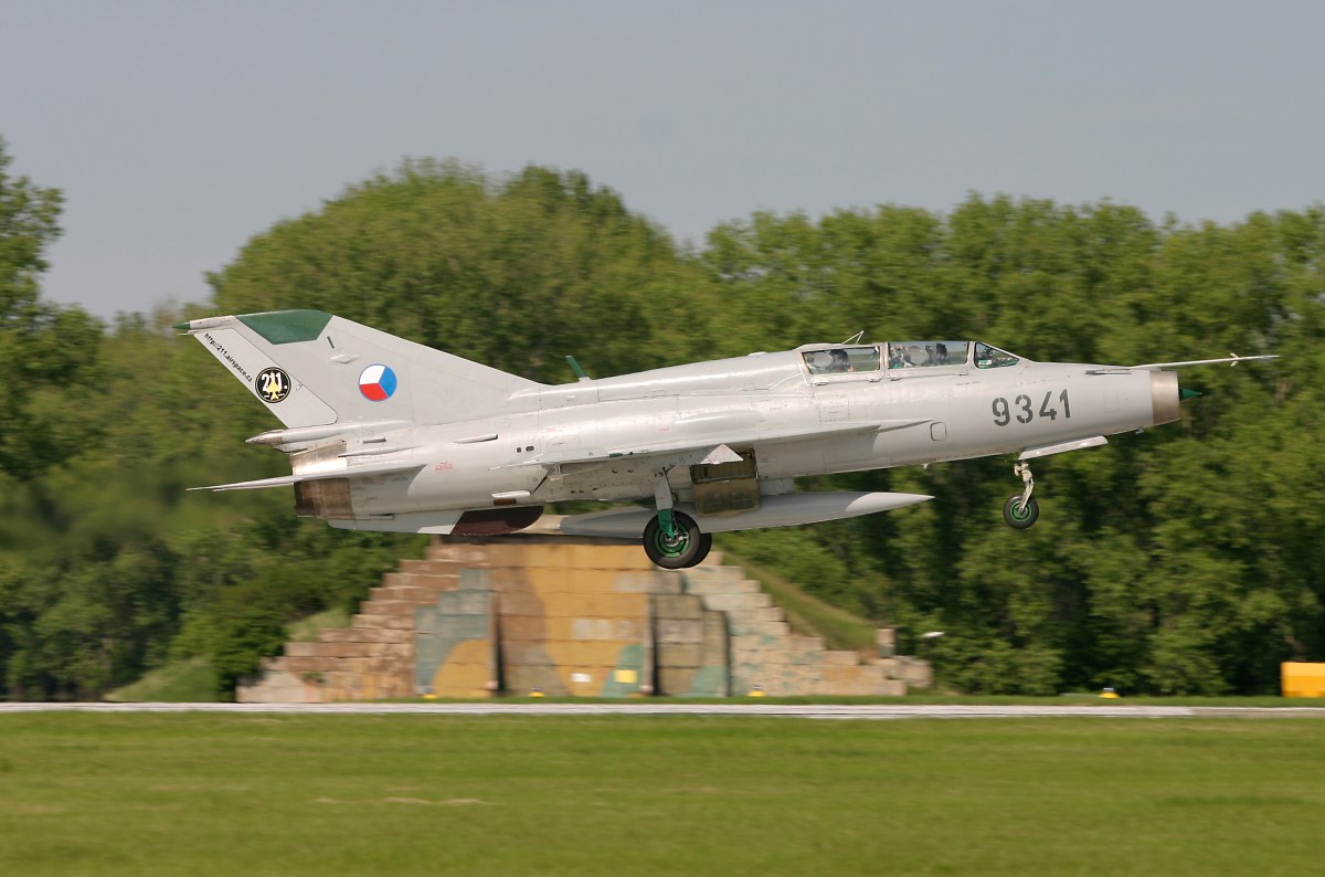 MiG-21UM 9341 Caslav 21-05-2005 Published June 11, 2014 at 2956 × 1956 in Farewell MiG, hello Gripen! ← Previous Next → 08. MiG-21UM landing after the show