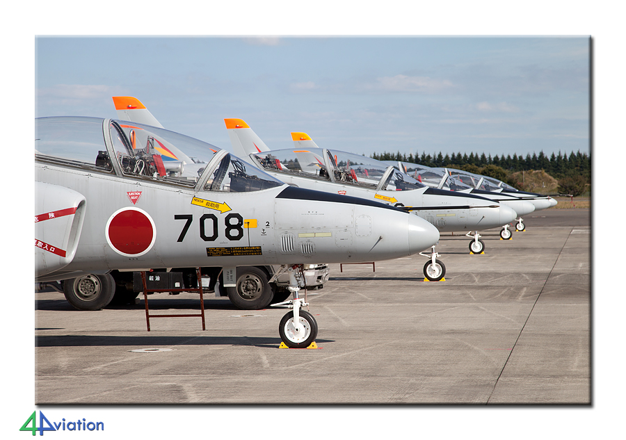 Monday morning (27 October) had an early start for two teams as we had quite a bit of motorway to cover to get to our first goal of the day: Shizuhama and the T-7s of the 11th Hiko Kyoikudan . After exiting the Tomei expressway and while looking for a gas station, we saw a T-34 and an F-104 on a roof, which obviously required closer inspection. As it turned out, these birds are at the Hasegawa model factory and on loan from the JASDF museum. The big boss arrived at the same time and invited us to have a close up look of the 104. After a few snapshots and a group picture we thanked him for his generous hospitality and we continued on to Shizuhama. The 11th Hiko KyoikudanT-7s were quite active and although the weather was overcast with a blustery wind, a number of nice shots were scored from both based Hikotais. Creative people even logged some shots with Mount Fuji in the background. Around noon it was time to move on to the 2nd training base we wanted to visit this day: Hamamatsu. The based T-4s of the 1st Air Wing had a bureau day, so no local T-4s were seen. Perhaps to compensate, a few visitors departed or came in including 2 T-4s of 301 Hikotai. The two teams, ‘short’ and ‘normal’, said goodbye to each other at Hamamatsu.